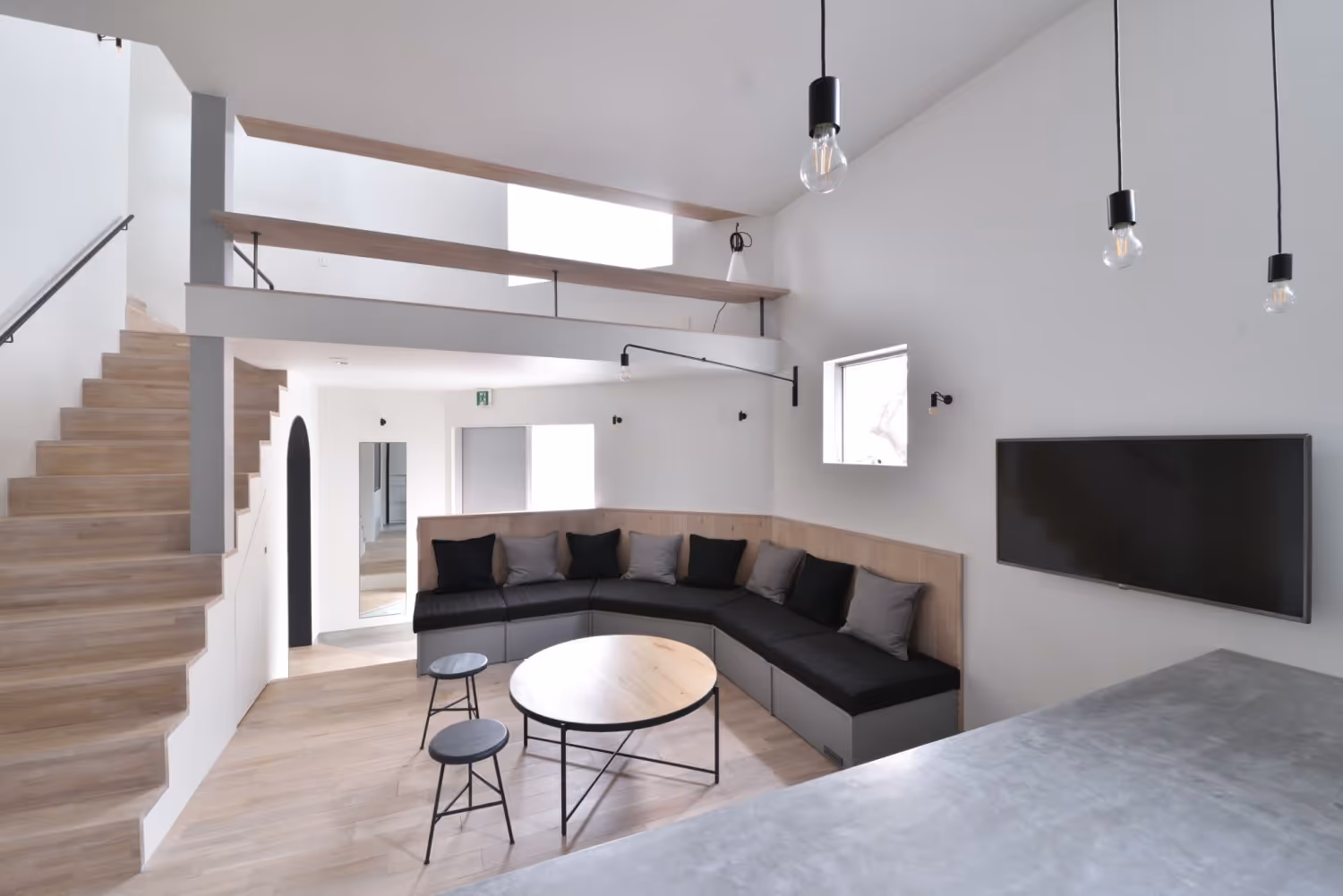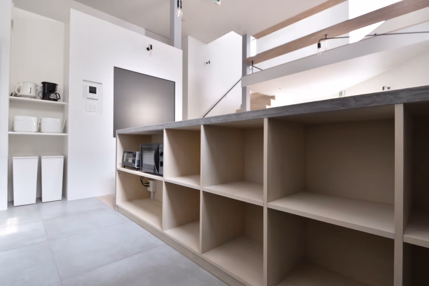 Modern coliving house in Osaka. You can relax at the library space and the rooftop in the sunlight. All facilities are fully equipped.