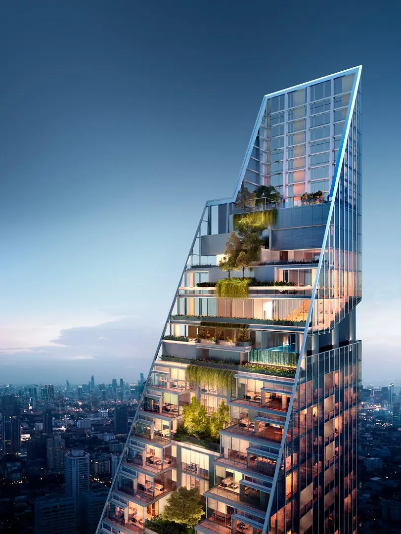 Located on Sathorn Soi 12, only 180 meters from the BTS station of St. Louis and is 40-stories high. The 2,000 sqm common area includes a gym, amphitheater, co-working spaces and cavern pool. A high standard of living which the modern urbanite aspires to.